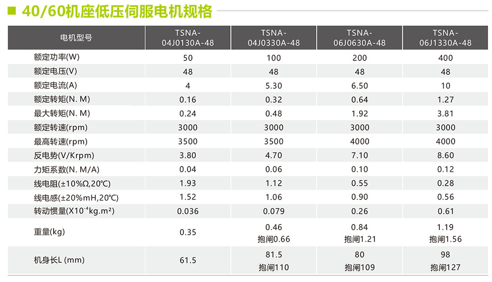 銳特TSN系列兼容伺服安裝尺寸,功率范圍100-1500W,配套通訊式編碼器,定位精度更高。電機(jī)額定轉(zhuǎn)速3000rpm,具有交流伺服同等規(guī)格的矩頻特性,可實(shí)現(xiàn)高性能的低壓伺服應(yīng)用需求。